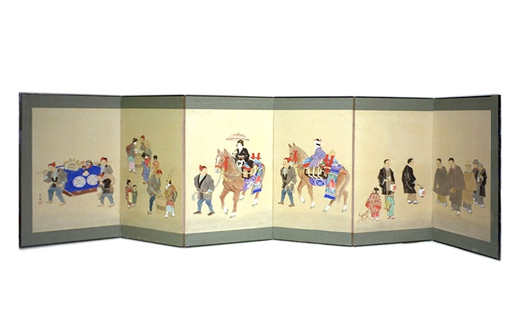 職業柄、細部まで精密に描<技法を得意としていたようで、仏画等を数多<残している。また、仕や旅行などで各地を訪れたときにはスケツチを欠かさず、それを、屏風や襖に描いてもいる。